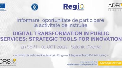Agenția pentru Dezvoltare Regională Nord-Est vă informează despre oportunitatea de participare la activități de instruire identificate ca fiind utile în procesul de creștere a capacității instituționale a beneficiarilor Programului Regional Nord-Est 2021-2027. Astfel, puteți înscrie o persoană angajată în instituția dumneavoastră care să participe, în perioada 29 septembrie – 1 octombrie 2025 la cursul intitulat Transformarea digitală în serviciile publice:…