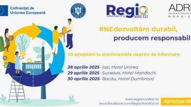 În perioada 28-30 aprilie 2025, Agenția pentru Dezvoltare Regională Nord-Est organizează o serie de evenimente de informare dedicate apelului de proiecte PR/NE/2025/P1/RSO1.3/1/2 – Investiții pentru creșterea durabilă a IMM, finanțat prin Programul Regional Nord-Est 2021–2027. Evenimentele vor avea loc după următorul calendar: 28 aprilie 2025 – Iași, Hotel Unirea (Piața Unirii nr. 5) 29 aprilie 2025 – Suceava, Hotel Mandachi (Bd. Sofia Vicoveanca…