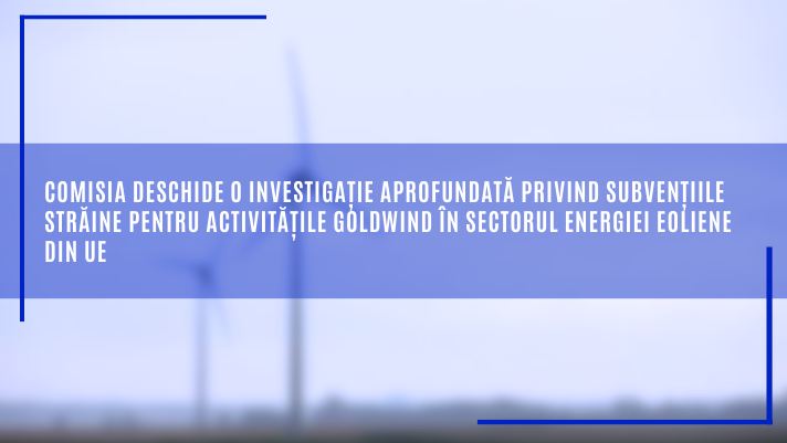 Comisia Europeană a deschis o investigație aprofundată pentru a evalua, în temeiul Regulamentului privind subvențiile străine („RSS”), activitățile Goldwind Science & Technology Co., Ltd. („Goldwind”) în producția și vânzarea de turbine eoliene și în furnizarea de servicii conexe în UE. Comisia are preocupări preliminare cu privire la posibilitatea ca Goldwind să fi primit subvenții străine care ar putea denatura piața internă a UE.