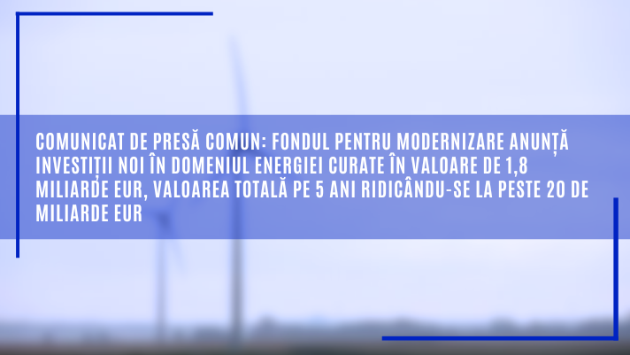 Comunicat de presă comun: Fondul pentru modernizare anunță investiții noi în domeniul energiei curate în valoare de 1,8 miliarde EUR, valoarea totală pe 5 ani ridicându-se la peste 20 de miliarde EUR.