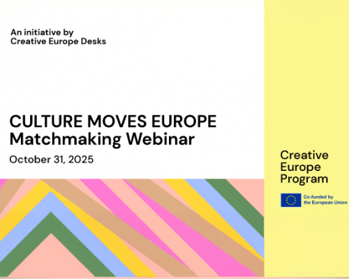 Nu rata webinarul și sesiunea de matchmaking Culture Moves Europe, organizate la inițiativa Biroului Europa Creativă din Serbia, în colaborare cu Birourile Europa Creativă din Armenia, Bulgaria, Croația, Letonia, Lituania, Polonia, România, Spania, Ucraina și Ungaria.